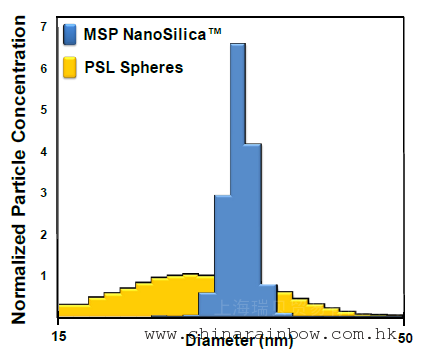 我們的納米二氧化硅尺寸標準采用獲得專利的 SiO2合成工藝開發(fā),其尺寸分布比市售的 PSL 球更窄。